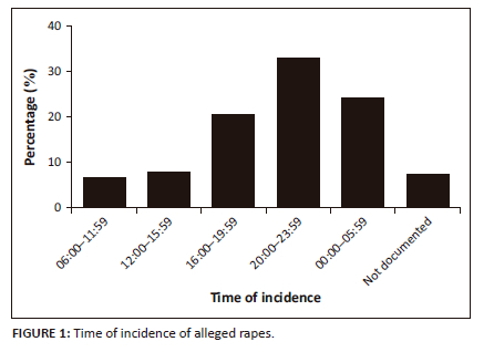 The findings in this study show a strong and significant association between the incidence of alleged rape and when it occurs, namely mostly on weekend nights, up to midnight. This finding corroborates that of Swart et al. (2000), who report that the incidence of rape in Johannesburg, South Africa, was found to dramatically increase from Fridays, with the highest incidence on Saturday, followed by Sundays (Swart et al. 2000). In addition, they report that most rapes reported in the Johannesburg area occurred between 18:01 and 00:00 (Swart et al. 2000). This suggests a link between the incidence of rape and increased social gatherings that often take place, sometimes up to midnight, on the weekend days in most parts of South Africa. Most rapes are reported to occur at social gatherings while people are consuming alcohol (Cole 2006). In South Africa, a person cannot legally consent to sex if they are intoxicated (South African Government 2007). In this study, only a small number of victims of rape reported having consumed alcoholic beverages. This is contradictory to the findings of Oshodi et al. in a Cape Town study, where 58% of the rape victims reported having used alcohol (Oshodi et al. 2020). This suggests that one can be a victim of sexual assault regardless of the level of alcohol intoxication. While the majority of the victims were mentally competent, about 5.5% (n = 9) were recorded to be mentally incompetent and may have been incapable of consenting to sexual acts. This corroborates findings from studies that report that individuals with mental retardation are increasingly becoming victims of sexual abuse, including rape, in South Africa (Calitz 2011). The ingrained reliance of such people on the caregiver authority figure, emotional and social insecurities, ignorance of sexuality and sexual abuse and a powerless position in society have been documented as some of the reasons why mentally incompetent individuals are especially prone to sexual abuse (Morano 2001). Because the vast majority of these individuals are often unable to testify in court, the majority of perpetrators tend to avoid arrest, because of lack of evidence (Kheswa 2014). However, Pillay and Sargent (2000) advocate that a non-intimidatory approach, characterised by developmentally sensitive interviewing and the use of an intermediary system can substantially increase the individual's level of confidence and enable them to relate the events in simple terms and give credible evidence in court (Pillay & Sargent 2000). It has been reported that primary care physicians (PCPs) have a potentially powerful role in preventing and documenting cases of sexual abuse of people who are affected by intellectual disabilities in their communities (Morano 2001). During clinical visits, PCPs must look out for signs of sexual abuse or sexual activity and must exhibit courage and report any irregularities (Morano 2001). In addition, PCPs should be aware that people who are mentally incompetent and who live in community group homes can be easy targets for abuse by caregivers or other members of the community as the majority of abusers are known to these individuals (Morano 2001).