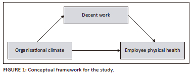 Keywords: physical health; organisational climate; decent work; South Africa; public service.