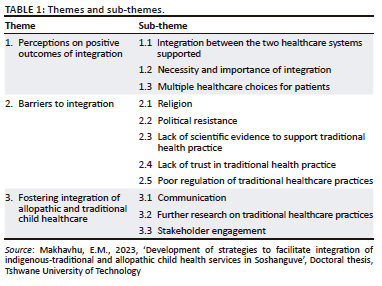 Traditional healthcare practitioners in this study indicated that they supported the integration of the two systems and that it would benefit patients if it was done correctly. This finding was in line with Green and Colucci (2020), which suggested that traditional health practitioners and allopathic healthcare practitioners recognised that integration between the two would benefit patients. Children's caregivers were also mainly supporting the integration; however, some were sceptical about the risks that may be involved with integrating the two.