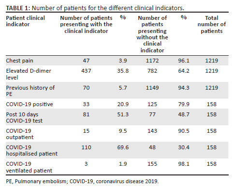 A retrospective descriptive study design was adopted to accumulate quantitative, numerical data from the PACS at the research setting to retrieve the required information regarding CTPA imaging performed to confirm PE from January 2019 to December 2020. The data were analysed generally and described as frequencies, central tendency and dispersion. The numerical data were analysed using statistical procedures (Polit, Beck & Hungler 2001). The radiology reports on the selected CTPA examinations were scrutinised to ascertain if a relation existed between a patient's elevated D-dimer level and a positive diagnosis of PE with CTPA.
