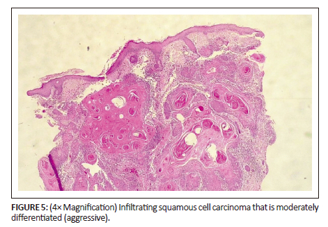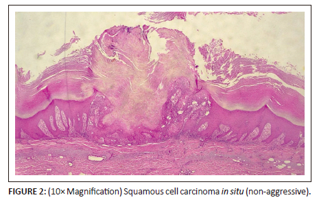 In line with studies by Kiprono et al. (2014), Mabula et al. (2012), and Lekalakala et al. (2015), the most common cutaneous malignancy in this study was SCC, followed by BCC.