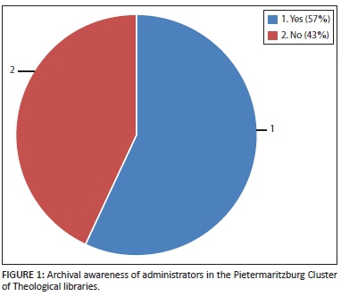 As far as the administrators are concerned, asking respondents about archival awareness was deemed suitable as it gave the researcher an indication as to whether there was any synergy between the records that the administrators had in offices and those records that were in the repositories. Figure 1 shows that four (57%) of the administrators were aware of their archives as compared to three (33%) who were not aware.