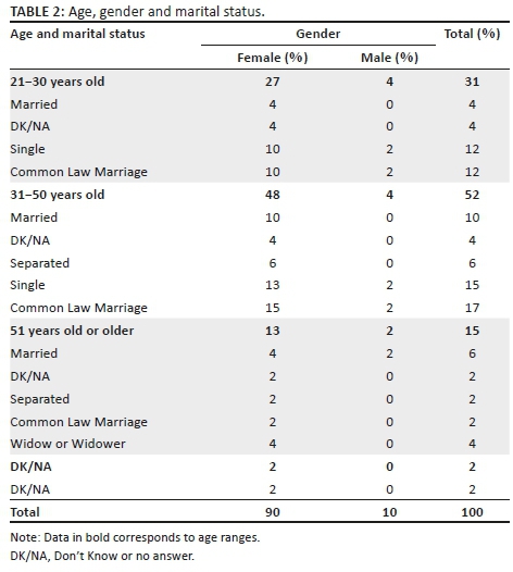 Most interviewees were women aged 31−50 years old and were either married or living under the Common Law marriage. Table 2 shows a higher tendency of this sector of the population to participate in communitarian and religious processes. However, despite having a high percentage, the sacrament of matrimony is not a common practice in families living in the peripheral areas of Medellín.
