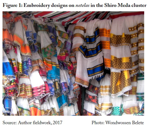 In contrast, the MSEs in the Shiro Meda handloom-weaving cluster operate in the absence of a strongly competitive environment. While there are a few modern fashion designers, operating outside the cluster, who started their businesses inspired by the traditional designs of the weavers, these designers tend to be collaborators with, rather than competitors to, the Shiro Meda weavers. The fashion designers procure from the weavers, relying on the weavers for certain fabrics and embroidery skills.