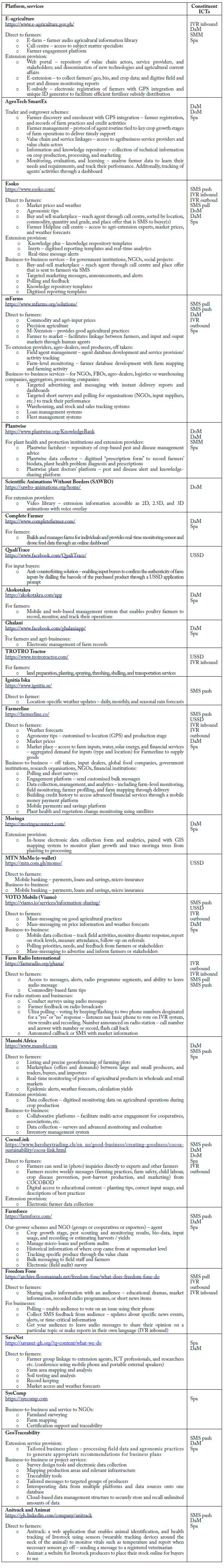 Appendix: Inventory of ICT4Ag platforms identified