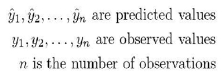 The root mean square error (RMSE) is a standard way to measure the error of a model in predicting quantitative data. RMSE is calculated as: