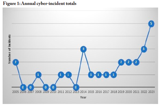 Figure 1 shows the annual cyber-incident trend, demonstrating the following: