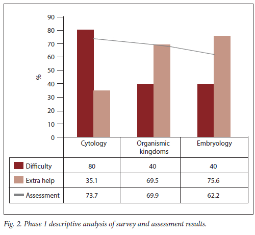 The results for the final phase were twofold: (i) the assessment marks for the first test written by the 2016 and 2017 class were compared; and (ii) a qualitative closed- and open-ended questions survey was completed for the pilot cohort in the current year. The marks for the 2 years for the different topics are compared in Table 3.