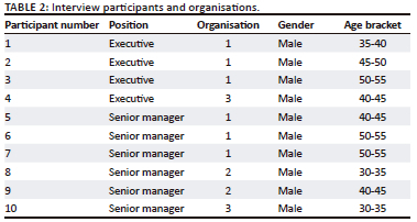 The interview population was made up of managers within the South African printing industry. Purposive and convenience sampling was used to select respondents who were most likely to have knowledge of the industry. It was also important to understand how different sizes of organisations reacted to the decline, and therefore, participants were selected from three different-sized firms. Firms 1 and 2 were larger, with revenues between R3 bn and R4 bn and employees exceeding 1100 and 1600, respectively. Firm 3 was smaller, with annual revenue of around R500 million and around 200 employees. The participants are listed in Table 2.