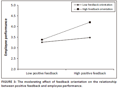 Hypothesis 4: Feedback orientation will boost the relationship between positive supervisor feedback and employee performance, such that the relationship is stronger for employees who have high levels of feedback orientation than those who have low levels of feedback orientation.