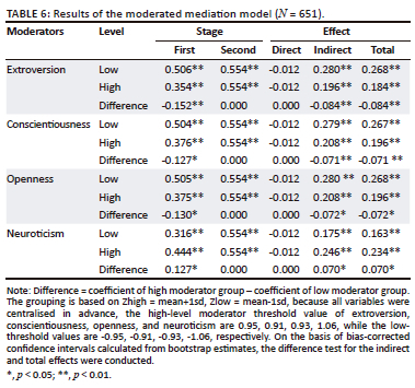 The moderating role of the Big Five personality traits (extroversion, agreeableness, conscientiousness, openness, and neuroticism)