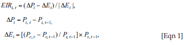 where EIRi, t represents the relative innovation resilience of enterprise i in year t. ΔPi denotes the change in patent applications for enterprise i. ΔEi estimates the patent application status of the enterprise i from t - 1 to t based on changes in the overall patent application volume in the city where the enterprise is located. Pi, t and Pi, t - 1, respectively, indicate the number of patent applications of enterprise i in years t and t - 1. Pc, t and Pc, t - 1 are the number of patent applications in the city where the enterprise is located in years t and t - 1.