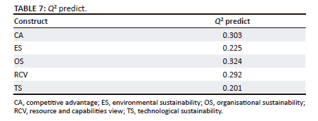 3. Predictive Power of Sustainability Frameworks: The significant R2 values for CA (0.713) and OS (0.332) reveal the strong explanatory power of sustainability frameworks in predicting CA and organisational outcomes. This theoretical conclusion emphasises the importance of integrating sustainability into core strategic frameworks, reinforcing theories that posit sustainability as a critical driver of competitive differentiation and operational excellence. The high predictive relevance (Q2 values) further supports this, suggesting that sustainability frameworks are not only theoretically sound but also practically predictive.