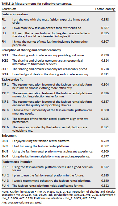DESIGN/METHODOLOGY/APPROACH: The conceptual model focuses on how fashion innovation (FI) and the perception of the sharing and circular economy (PSCE) affect task-service fit (TSF), enjoyment (ENJ) and the intention to use the platform. A survey and partial least squares structural equation modeling were employed to test the proposed hypotheses. Data from 192 participants with an academic background in fashion were empirically analysed