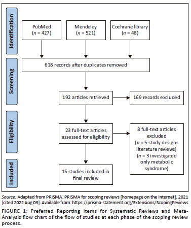 METHODS: The study adopted a framework for scoping reviews. The first step identified the research question, followed by identifying studies from three databases: PubMed, Mendeley and Cochrane Library. A total of 618 nonduplicate studies were screened, with a final selection of 15 full-text studies from 2012 to 2022. Data were extracted using the Souza (2010) data extraction tool and analysed numerically and with thematic content analysis