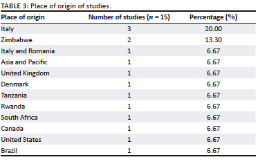 With regards to the place of origin of the studies, Table 3 outlines where the studies were conducted.