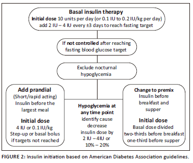 The limitations of a 'glucocentric approach' in T2DM management are well established. Currently, the main focus in T2DM treatment is the prevention and management of cardiovascular disease (CVD), heart failure (HF) and chronic kidney disease (CKD).3 While glycaemic control remains essential, sodium-glucose-transporter-2 (SGLT2) inhibitors or glucagon-like peptide-1 (GLP-1) agonists are increasingly gaining traction due to their beneficial risk-benefit profile. Most of these benefits seem to be over and above their antihyperglycaemic properties, with or without using other antidiabetic medication.3,4 Notwithstanding, hyperglycaemia remains a risk factor for adverse cardiovascular (CV) outcomes and early glycaemic control in T1DM and T2DM leads to better results, commonly referred to as the 'legacy effect'.5 In South Africa, insulin remains the third most widely used antihyperglycaemic agent in T2DM.6 Therapeutic inertia accounts for many unmet glucose targets.7 Local barriers to DM management on a healthcare provider level include limited knowledge of insulin therapy.8 Insulin use may also be hindered by concerns over hypoglycaemia and weight gain.9,10 Thus, it is prudent that practitioners in resource-limited settings are familiar with the practical aspects of insulin therapy (initiation, intensification).