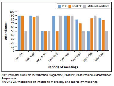 A good balance is observed between the clinical exposure, learning and participation in the continuing professional development (see Figure 2). The latter includes monthly activities such as participation at the Perinatal Problems Identification Programme (PPIP), Child Problems Identification Programme (Child PIP) and other morbidity and mortality meetings. Interns are also encouraged to make presentations on topics of interest taking into account the diseases' epidemiology of the area. A daily morning meeting takes place where interns and supervisors reflect on the previous day's activities and also planning for the day ahead. A sizeable amount of learning takes place in these meetings.