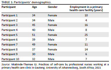Self-care practices among professional nurses employed in primary health care clinics
