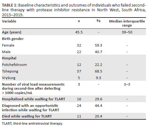 The baseline characteristics and outcomes of the 54 study patients are shown in Table 1. The median duration on ART from first-ever ART initiation to PI resistance being diagnosed was 5.5 years (interquartile range [IQR]: 6-11 years).
