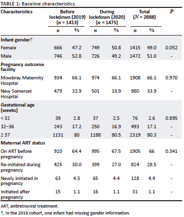 The objectives were to determine the proportion of HIV-exposed infants born during the COVID-19 lockdown who had birth and 10-week HIV testing compared to infants born in the same period in 2019, before the pandemic, and to determine the proportion of infants testing HIV-positive in each cohort.