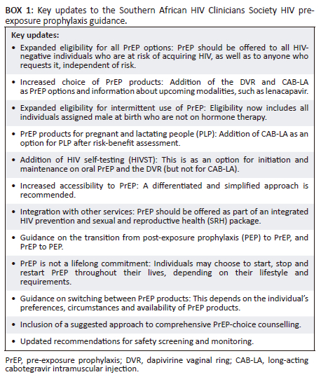 This guideline aims to increase accessibility to PrEP within the South African context. Key updates are detailed in Box 1.