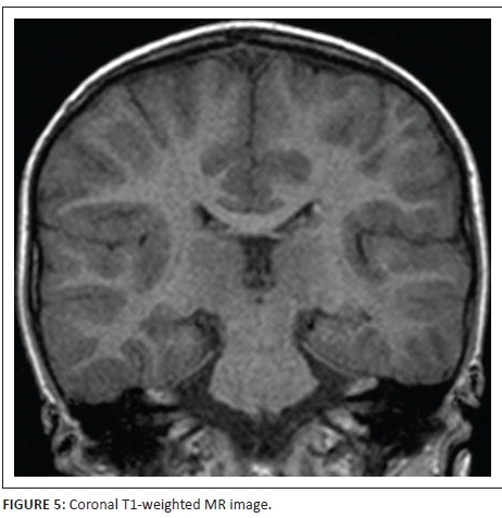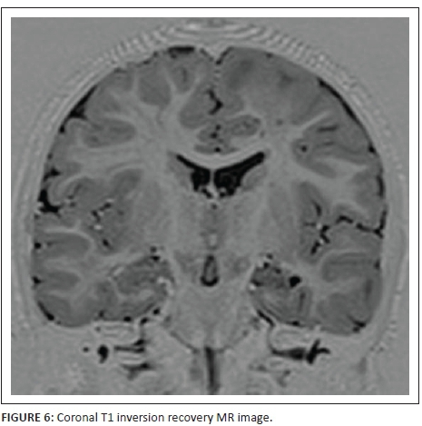 A three-and-a-half-year-old male child was referred for neuroimaging under general anaesthesia for intractable seizures. Figures 1, 2, 3, 4, 5 and 6 are the selected MR images.