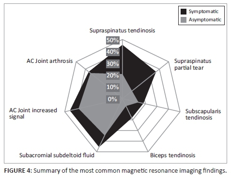 Most of our findings correlate with previous studies done, demonstrating multiple abnormal MRI signal changes in the asymptomatic shoulder.4,11