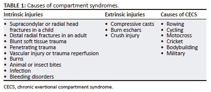The causes of acute and chronic compartment syndrome are listed in Table 1.1