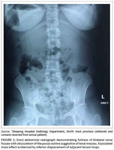 The patient then re-presented 4 months later and was admitted as a hypertensive urgency with a blood pressure of 178/118 mmHg. On physical examination, bilateral flank masses were palpated. Further systematic examination revealed no other abnormalities. The patient's blood results showed deterioration in renal function. The patient's blood pressure was eventually controlled with a combination of three anti-hypertensive agents.