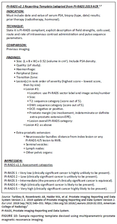 See Figure 10 - a template for reporting of multiparametric prostate MRI studies using the algorithm outlined in Figure 11, providing the reporting radiologist with a structured approach to lesions of the peripheral and transitional zones of the prostate.