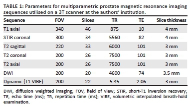 Prostate cancer (PCa) is the second most common cancer in men worldwide. Two thirds of PCa cases are diagnosed in the more developed regions in the world.2,4 In South Africa the age-adjusted risk of being diagnosed with PCa is 30.96/100 000 and the lifetime risk in men is 1:2.5 Traditional diagnostic tests for detecting PCa, namely prostate-specific antigen (PSA) and transrectal ultrasound-guided (TRUS) biopsy, lack both sensitivity and specificity. Prostate-specific antigen is specific to the prostate gland but not to PCa. Transrectal ultrasound-guided biopsy can miss up to 30% of tumours and in approximately 30% of cases underestimates tumour aggressiveness.2,6,7