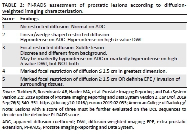 2. Steiger P, Thoeny HC. Prostate MRI based on PI-RADS version 2: How we review and report. Cancer Imaging. 2016;16:9. https://doi.org/10.1186/s40644-016-0068-2 [ Links ]