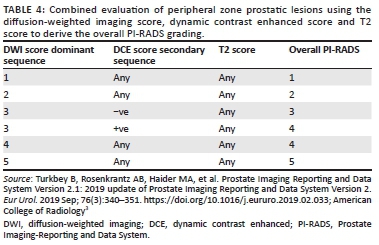Although the main sequence is DWI, start by assessing the PZ on the T2W sequence; any T2 hypointensity needs further interrogation with DWI-ADC. The complementary sequence to DWI is DCE (Tables 2-4 and Figure 4).
