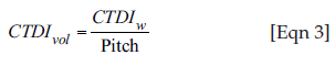 Volume CTDI (CTDIvol) represents the local dose across a single transverse slice during a helical scan and is inherently pitch-corrected. CTDIw from an axial scan can be converted to the equivalent CTDIvol by dividing by the pitch (the ratio of table movement during a single revolution and the beam collimation) of the helical scan,