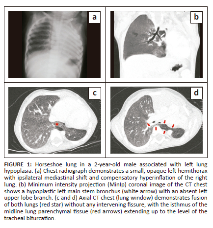 Keywords: horseshoe lung; pseudo-horseshoe lung; scimitar syndrome; lung hypoplasia; congenital lung anomaly.