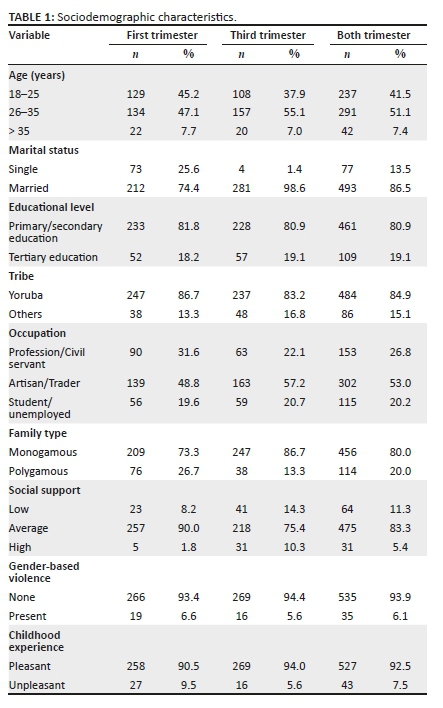 In our study, majority of the pregnant women had a planned pregnancy, which is in agreement with that of Thomson and colleague.4 Our study was done among married Africans, who believe that childbearing in marriage is essential. The pattern of distribution of socio-demographic and obstetrics and gynaecological variables across trimesters were majorly similar, and there was no significant difference across trimesters except for marital status, occupation status, childhood experience, parity and mode of delivery.