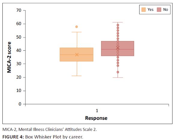 RESULTS: Of the total scores, 97.2% participants fell below the median potential score of 56, reflecting a low prevalence of stigmatising attitudes. The African cohort expressed less interest in psychiatry (P=0.0017), compared to other race cohorts (ranging from 92.1% to 100.0%.