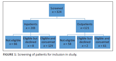 A total of 324 patients were screened until the sample size of 190 was obtained (Figure 1).