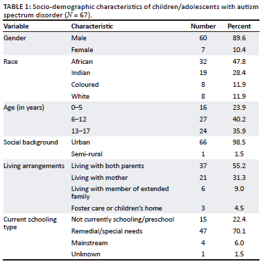 Keywords: autism spectrum disorder; clinical features; children and adolescents; South Africa; Durban, sociodemographic profile.