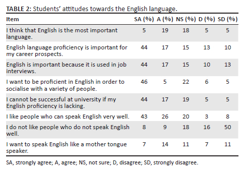 Student attitudes towards the English language