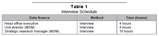 A case study method was chosen in order to describe the design and implementation of the PMF of a state controlled organisation, as well as to determine if the organisation had achieved its objectives. This method was employed, not only because of the qualitative nature of the data, but also due to the exploratory nature of the study and the fact that it allowed us to collect data from multiple sources (Leedy, 1993; Yin, 1994; Leedy & Omrod, 2001). In this regard, we obtained data from interviews, company documents, press releases and websites. The data from the case study setting were primarily collected from a number of semi-structured interviews, illustrated in Table 1. Other data, consisting of company documents, were made available to the researchers in electronic or hard-copy format or by providing appropriate websites. With respect to the interviews, a senior CSIR Group manager for Research and Development was interviewed twice before he referred the researchers to suitable managers at business unit level. Because of the wide range of responses, as well sources of data, a content analysis was used to assemble the data in themes and patterns (Breakwell, Hammond & Fife-Schaw, 2000). In order to ensure that the data had been reliably recorded, our written account of the case study was verified by the research organisation.