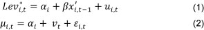 is a vector of lagged characteristics of firm i, including timespecific dummies. In equation 2, μi,t is the vector of unobserved disturbances, where αi is the unobservable firm- specific effect that varies across firms but is fixed over time. vt is the firm invariant time specific effect. εi,t is the white noise disturbance.