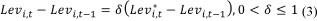 The parameter δ is the speed of adjustment. Levi,t - Levi,t-1 is the actual change in leverage and