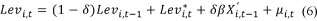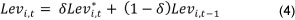 is the desired change in leverage. If transaction costs are zero, then δ =1, meaning that firms will automatically adjust to their target capital structure. If transaction costs are 1, then δ = 0, meaning that transaction costs are so high that Levi,t = Levi,t-1. From equation 3, the actual leverage level can be computed as: