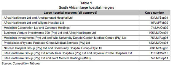 As stated in the introduction, this article aims to address the current gap in the academic literature discussing market concentration trends in the private health sector in SA. It is often stated that concentration levels increased in the private hospital market as a result of various hospital mergers that have been approved during the past decade and a half.2 However, no empirical evidence of this perceived increase in concentration has been published to date.