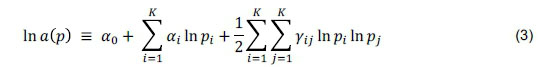 where pjis the price of commodity j and a(p) is a price index used to deflate total expenditure, defined as