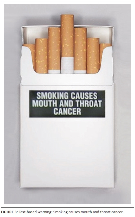 In many countries, the (often growing) number of deaths attributable to smoking is forcing governments to adopt a stricter stance on cigarette consumption. In some countries, legislation requires the use of picture-based cigarette warnings, ousting the use of text-based cigarette warnings (Tobacco Labelling Resource Centre 2016; Tobacco Tactics 2016; World Health Organization [WHO] 2013). The current text-based cigarette warning labels attempt to engage consumers in a rational thought process in the hope that they will realise the negative effects of smoking. By engaging a consumer in this cognitive thought process, marketers hope to influence their attitudes (Hawkins & Mothersbaugh 2013). However, when introducing fear-appeals that use picture-based warnings, the effect on consumer attitudes is believed to increase dramatically (Hammond et al. 2003; O'Hegarty et al. 2006; Thrasher et al. 2007). This intensification is because the use of pictures makes the possibility of the threat occurring seem much more credible (Cantrell et al. 2013), leaving the consumer feeling susceptible to the threat. As a result, picture-based warnings create a more believable warning that could affect consumer attitudes more effectively (Cantrell et al. 2013).