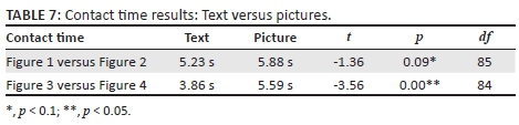 It is against this background that this study explored the contact time of the participants with both the text-based and the picture-based warnings.