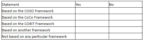F3) For each statement, indicate 'yes' or 'no'. The base sentence reads: The business' system of internal control is … (tick the most appropriate box(es) below).